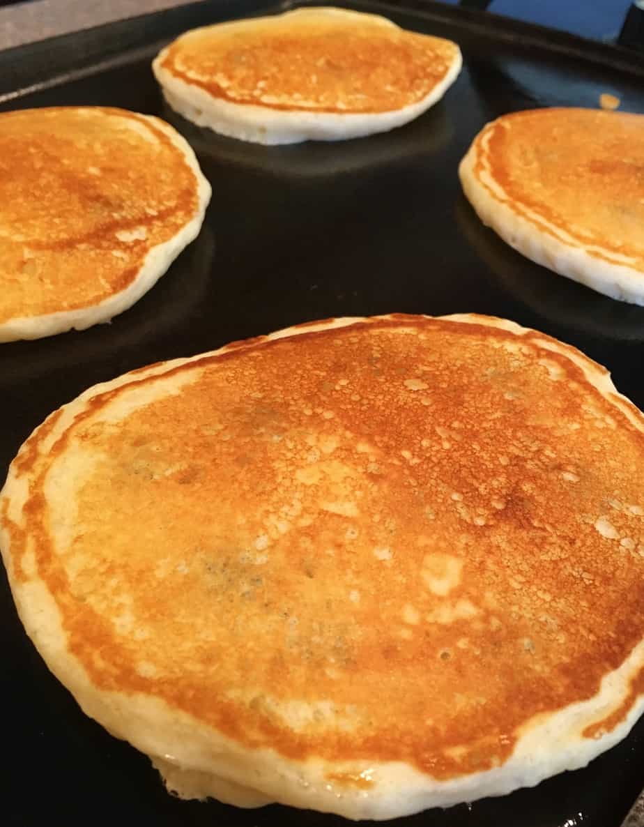 Don’t those look amazing? These pancakes cook up so beautifully! I love to flip them and watch as they puff up.